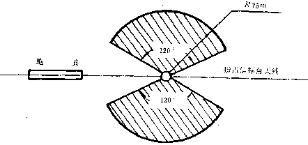 4.3.3 指點信標臺向空中發射垂直扇型波束。其覆蓋區為,高度50—100m時,縱向寬度為200—400m;高度200—400m時,縱向寬度為400—800m(圖 5)。